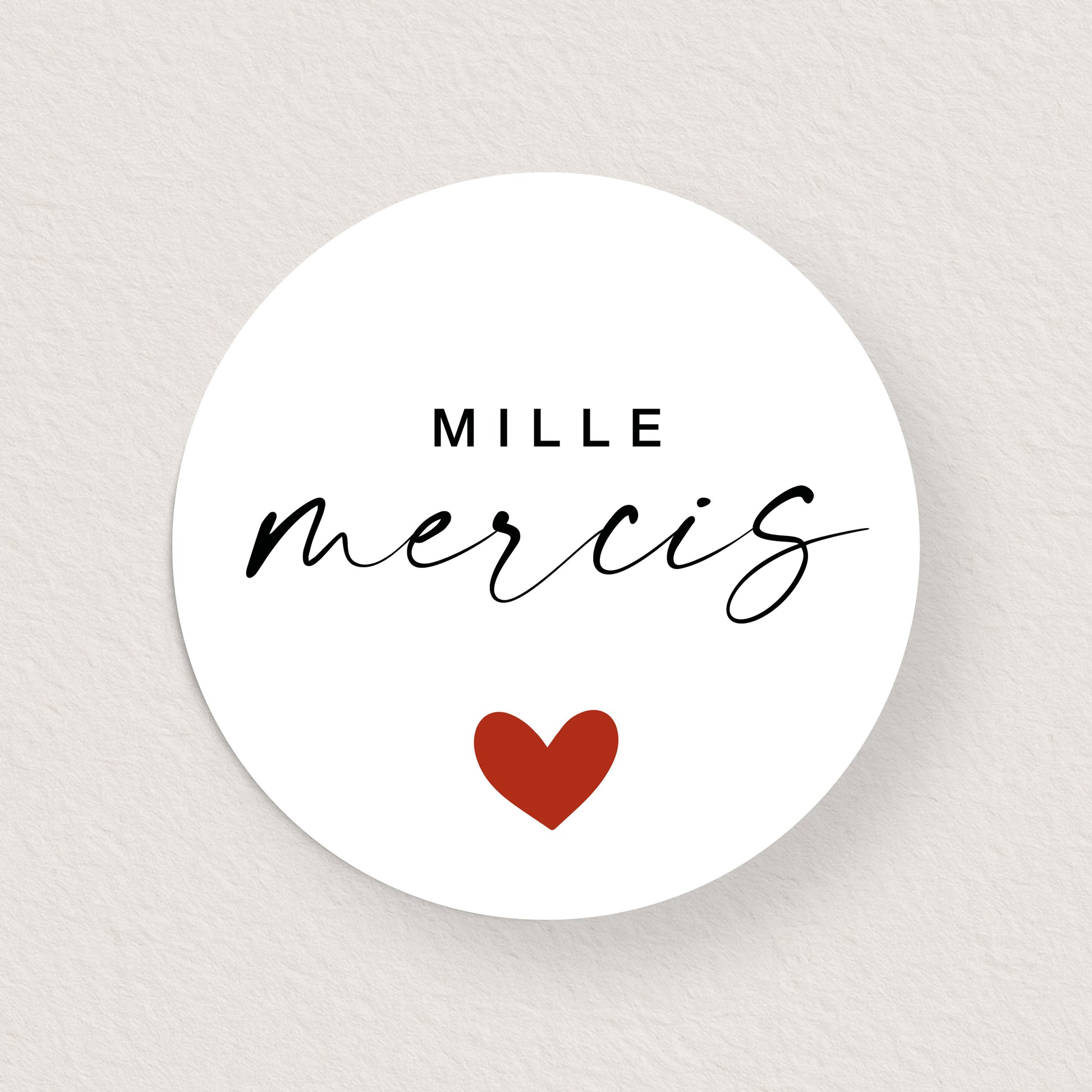 Lot 10 stickers 'mille mercis' noir rouge 3 cm
